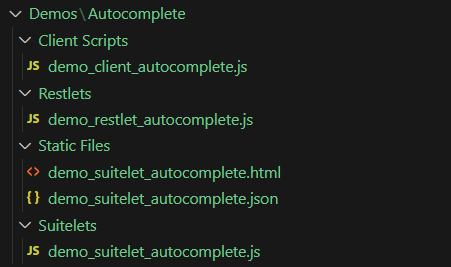 My example includes the following scripts: Suitelet, Restlet, Client, and an HTML file. The JSON file takes the place of a database. I created my JASONized data using vsCode’s Copilot. That’s a handy tip!