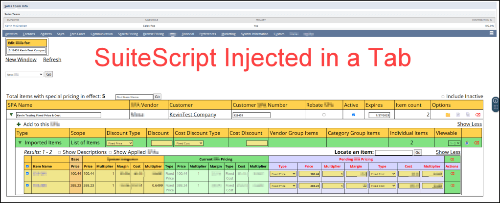 A developer can inject custom code into a standard form, like viewing or editing a sales order. This is done through User Event Scripts and custom fields. Its even possible to commandeer a section of a standard form, like editing a sales order and injecting a single page app into a section of that form. Basically the sky’s the limit!